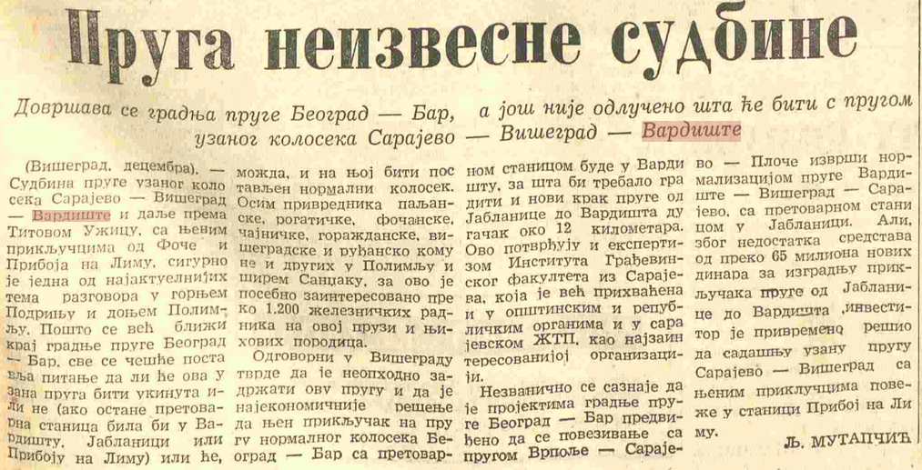 Tanjug je u junu 1953. izvestio: „Na železničkoj pruzi Beograd-Sarajevo, u neposrednoj blizini železničke stanice Vardište, bila je velika provala oblaka. Železnička pruga je na tri mesta, u ukupnoj dužini od 300 metara, zasuta kamenom, zemljom i peskom. U nanosima do jedan i po metar. Tom prilikom je bio zatrpan putnički voz broj 31 pri ulazu u stanicu Vardište. Zahvaljujući opreznosti i snalažljivosti voznih službenika ove kompozicija voz je blagovremeno zaustavljen i izbegnuta je velika nesreća. Kompozicija je zaustavljena u samoj blizini vodene bujice. Ljudskih žrtava nije bilo.“
